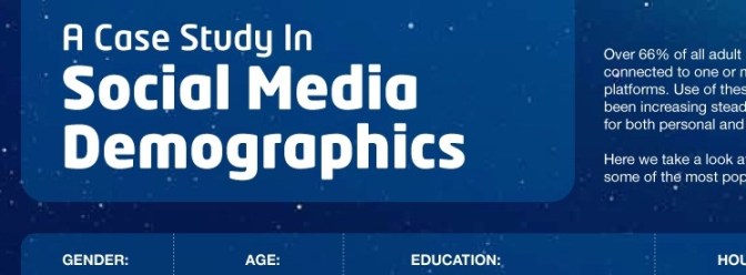 This infographic is similar to many the internet has seen in the past. I was surprised to see that with both Facebook and Twitter, the age demographic between age 0-24 has the lowest amount of users. I could see that for Twitter, since it is a lot about celebrities, organizations, and corporations, but that number surprised me for Facebook. It is good to see that Facebook has marketed to the 45+ demographic, which has the most amount of users. Surprisingly, that age group is the highest using Pinterest, LinkedIn, and Digg. There are other specifications as well, including gender, education, and household income. Twitter, Pinterest, LinkedIn, and Reddit have the richest users who make 100,000+ per year, yet Reddit’s amount of low-income users ties the high income users.